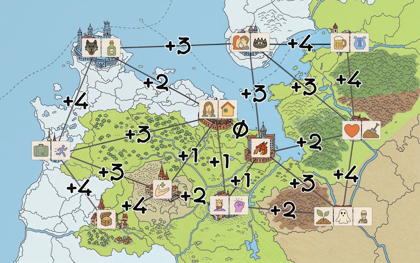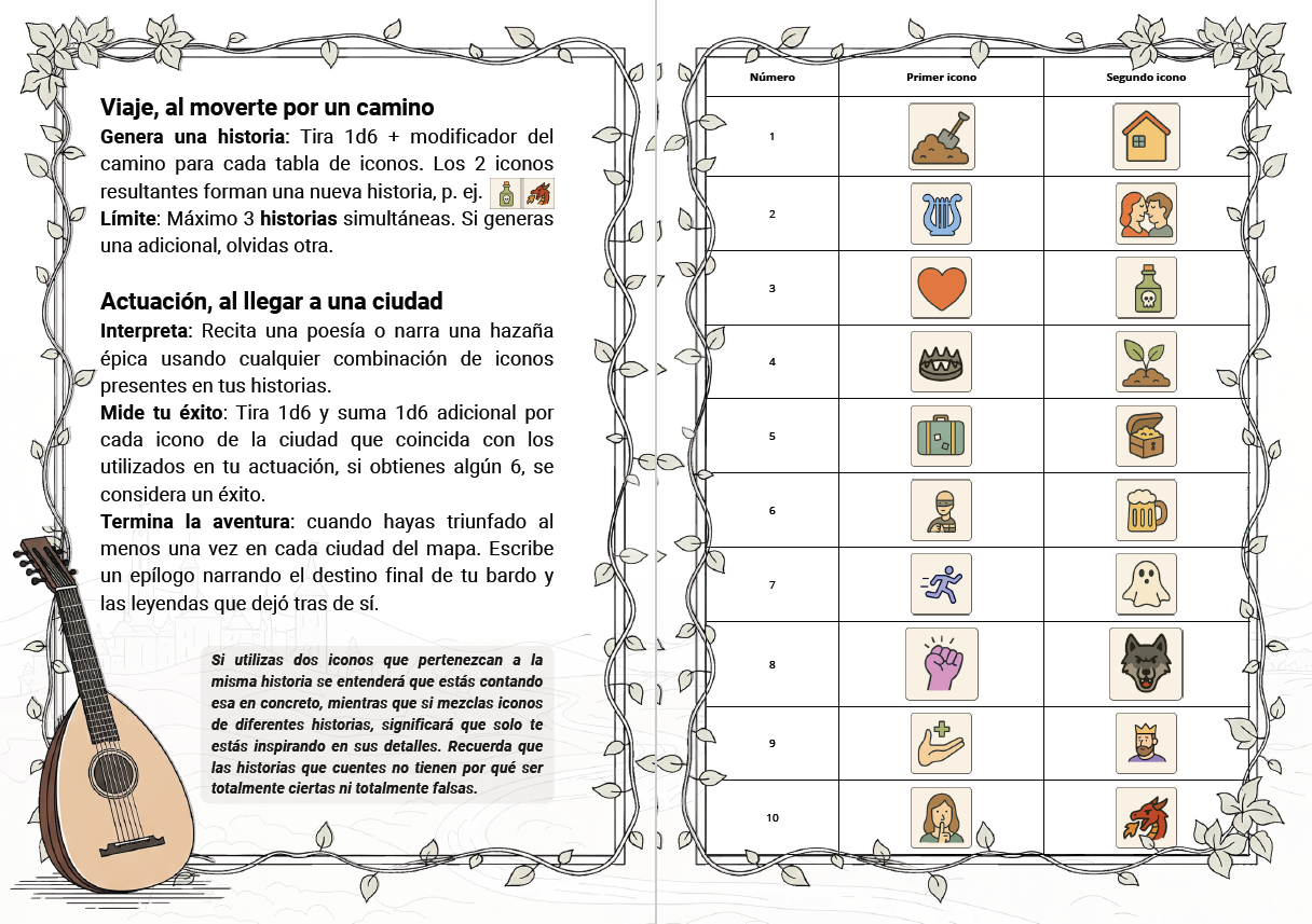 Laúd es un juego narrativo y de diario. Tu misión principal es recorrer el mapa, viviendo aventuras en los caminos y transformándolas en actuaciones épicas en las ciudades.